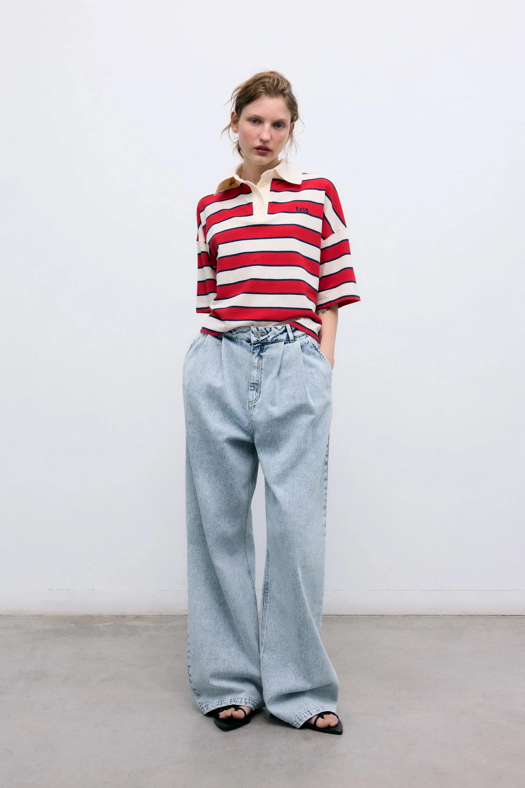 Cropped polo crafted in soft piqué fabric, featuring contrasting stripes and a structured twill collar. Finished with a new branded embroidery on the chest, this best seller combines refined style with everyday comfort.
