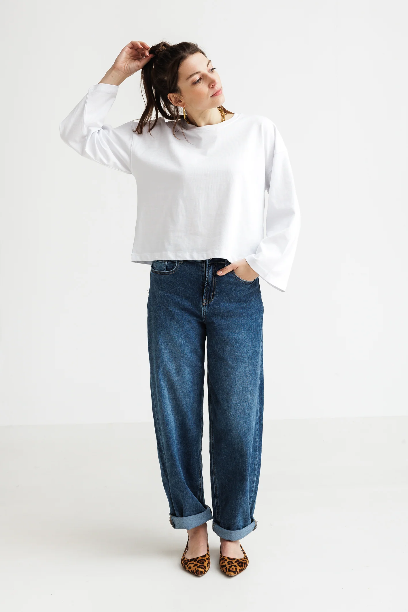 Ronde hals. Verlaagde schouders. Lange mouwen. Boxy fit. Oversized fit.