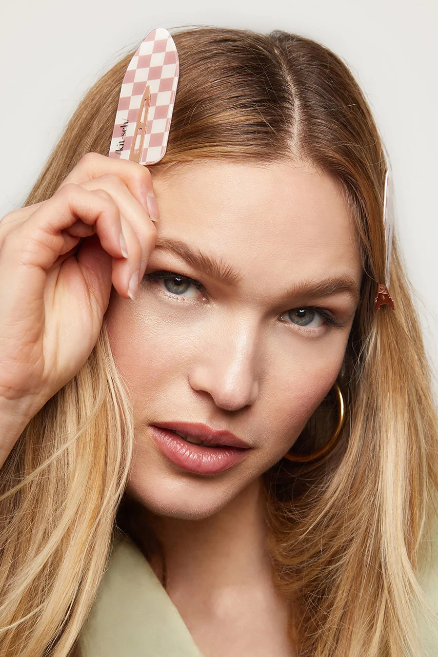 Kitsch Recycled Plastic XL Creaseless Clips are a must-have for beauty gurus. Made with recycled materials, these clips are kind on your hair & the environment. -Keeps flyaways & bangs out of your face during makeup application -Extra-large size securely grips thicker sections of hair -Won’t crease, snag, or dent hair -A pro favorite tool for runway & backstage beauty prep