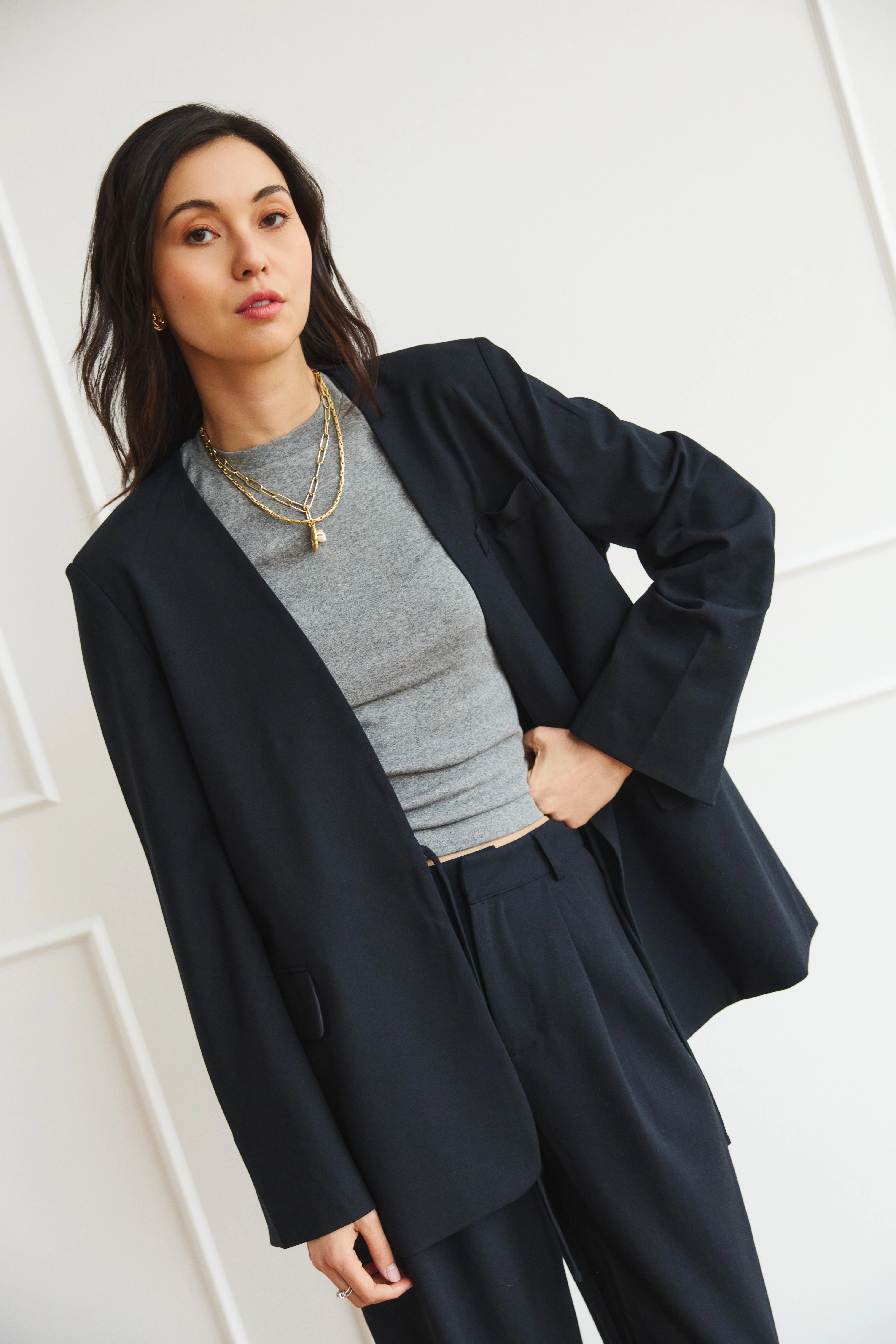 The Sophie Blazer in Dark Blue is your new go-to piece for effortless style. Throw it over anything—a crisp white tee, your favorite dress, or casual weekend wear—and instantly elevate your look. Crafted for comfort without sacrificing sophistication, this blazer proves you don't have to choose between cozy and chic. Perfect for those days when you want to feel put-together without the fuss. Dress it up or down, because versatility is always in style.