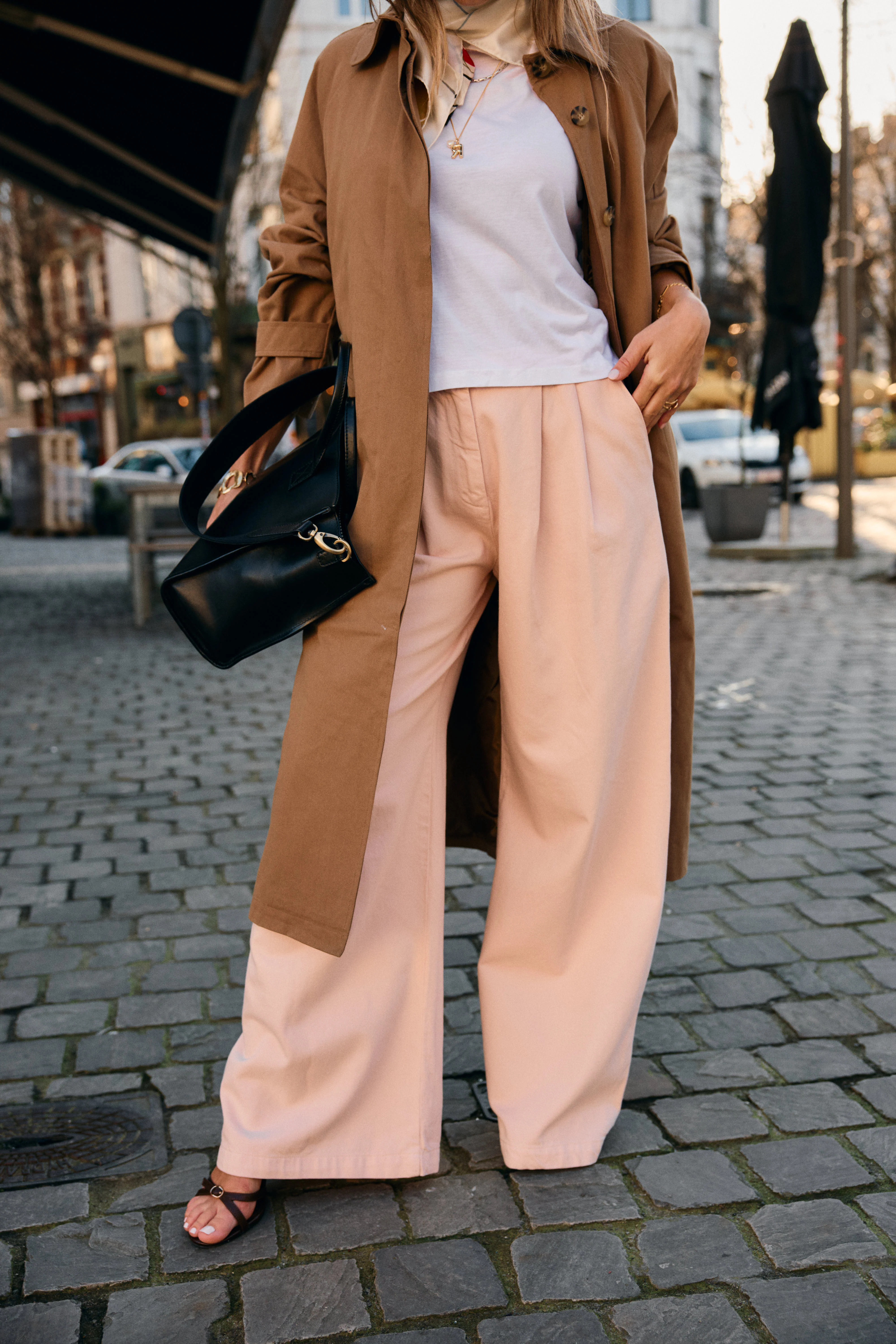 Wide-leg pleated pants with pleats below the waistband, in soft garment-dyed drill, woven in Spain.